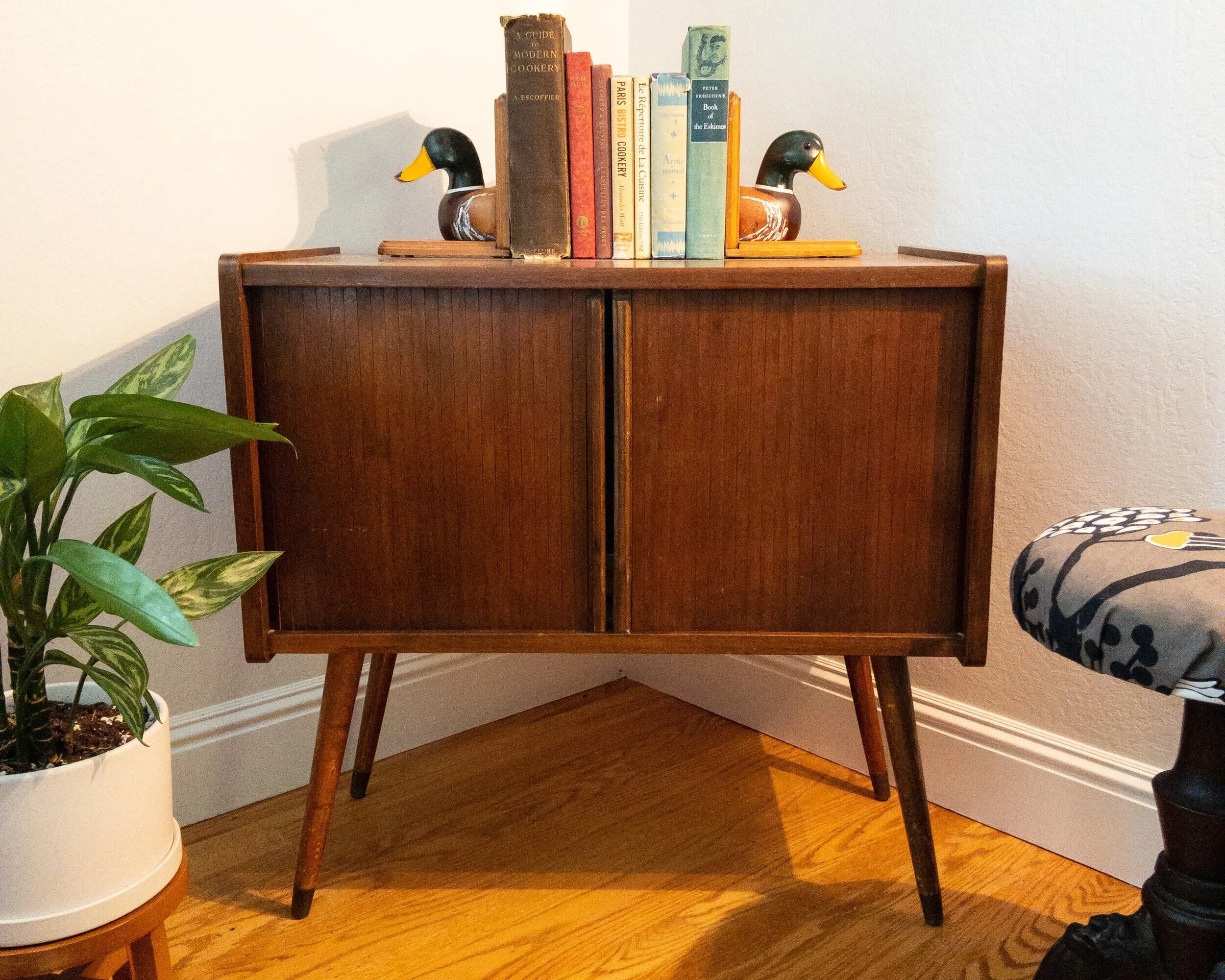 When we cut ties with cable for streaming those ugly consoles went away and I was left with an adorable cabinet.